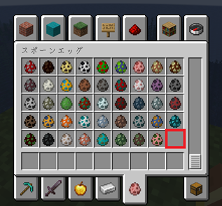 そうすると以下の場所にスポーンエッグが追加されているはずです。