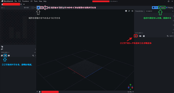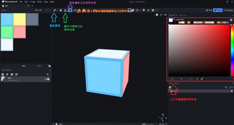 6.そうしたら4.で緑色に囲ったところ[Paint]を押す。そうしたら自分の好きなように色塗りをする。機能説明は以下の通りです。