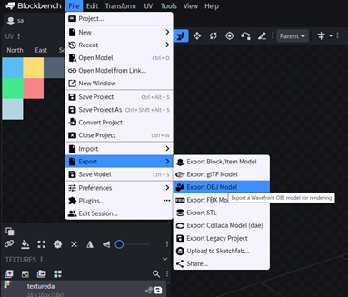 7.色を塗り終えたら、モデル、テクスチャをエクスポートする