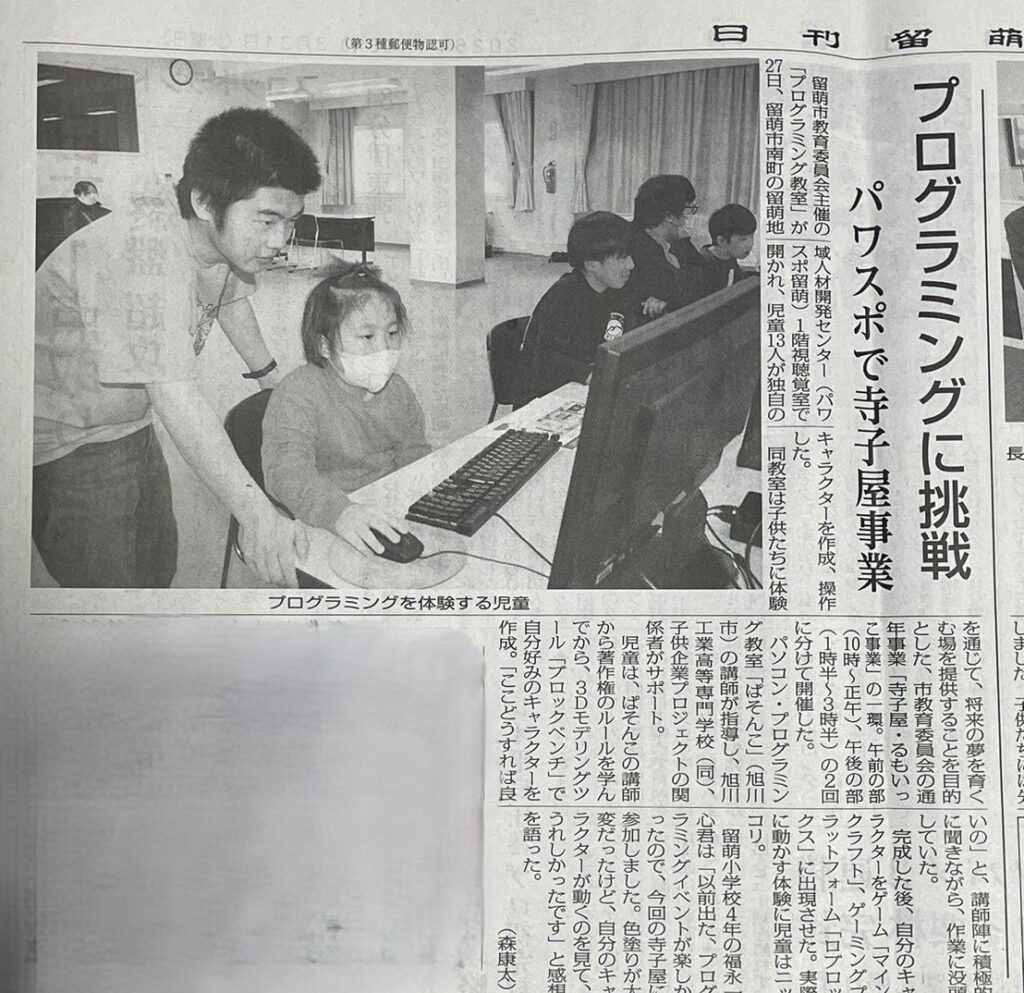 先日の27日に、留萌市の留萌地域人材開発センターにて、「 寺子屋るもいっこ 」の活動に補助講師として参加させていただきました。
